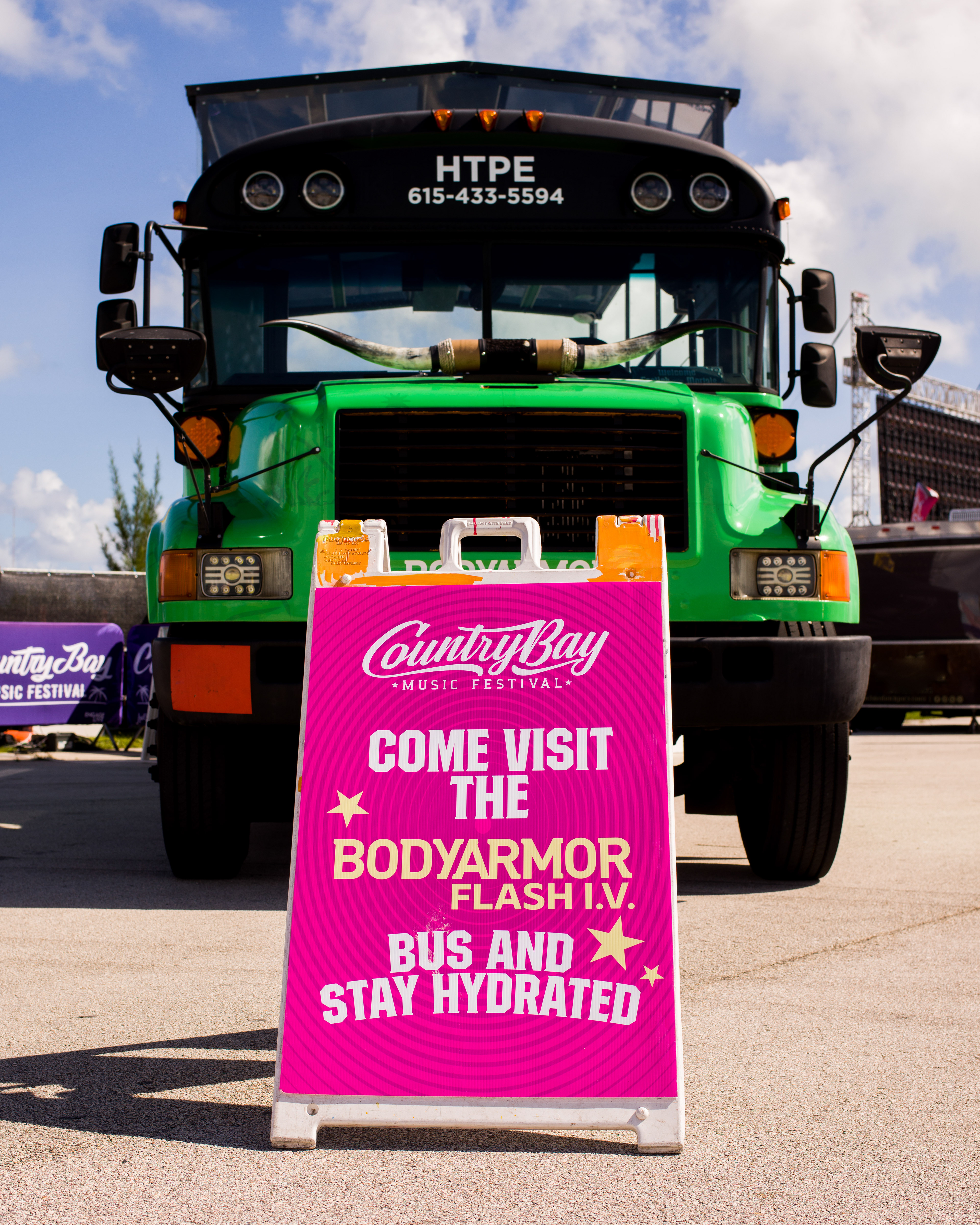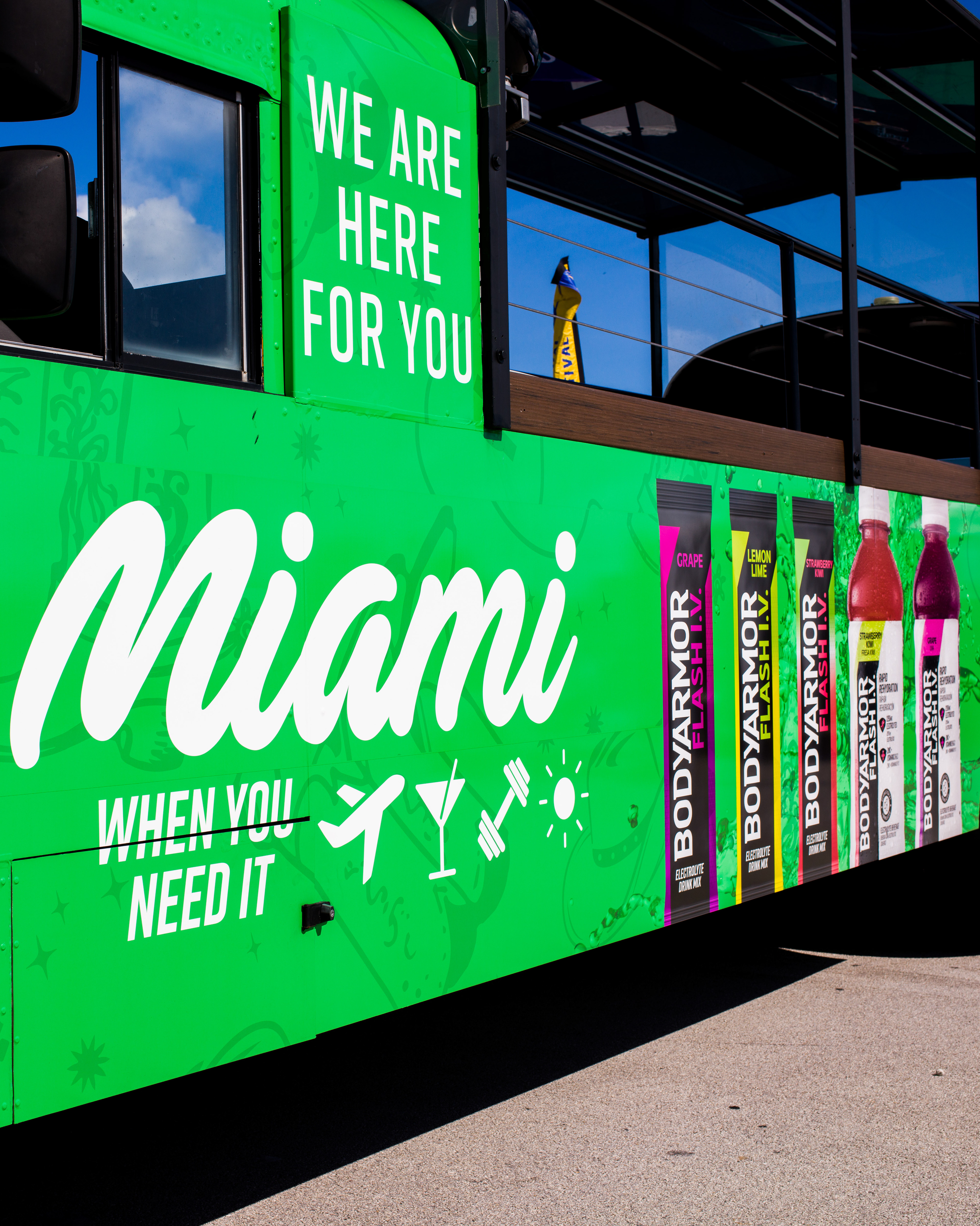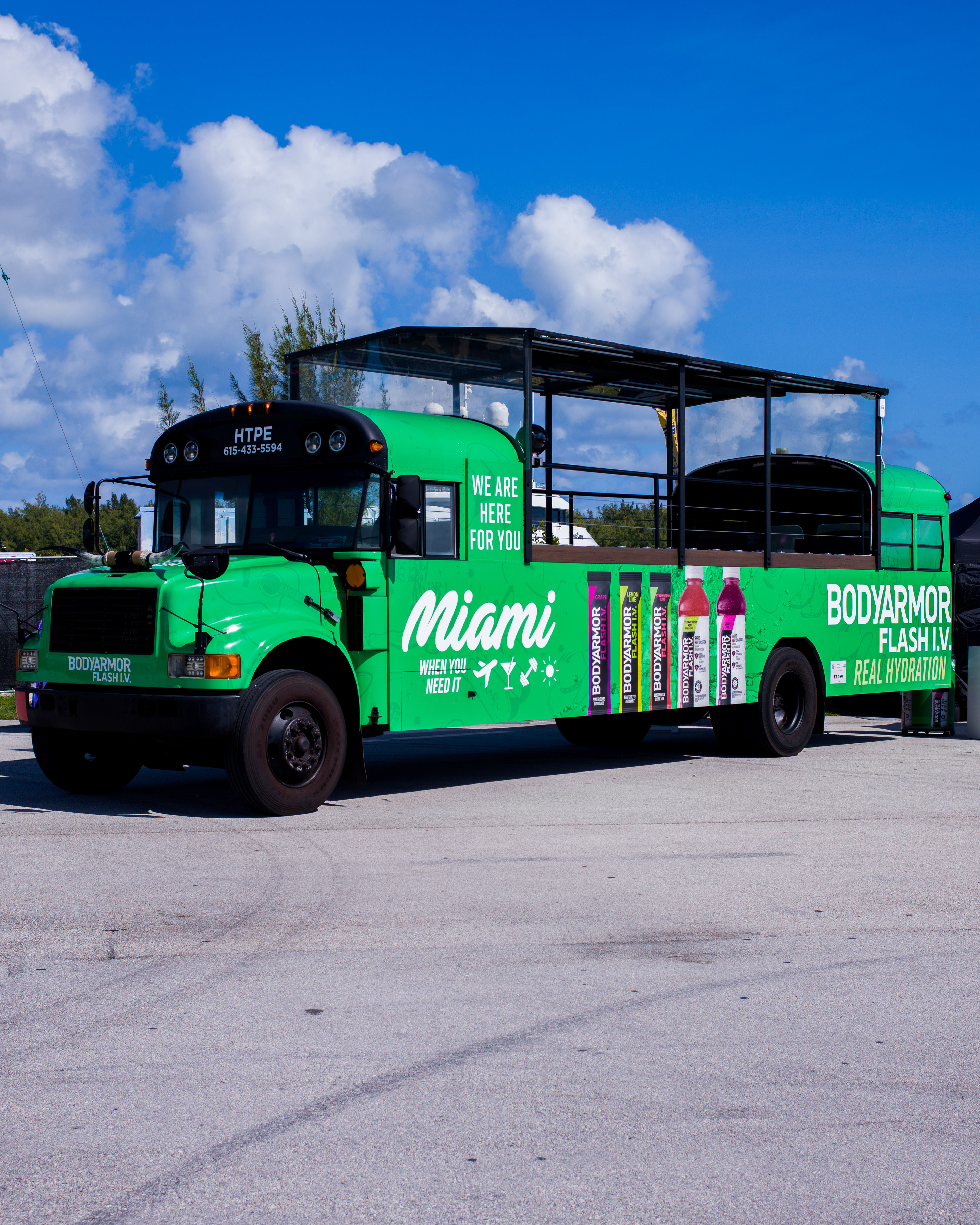 To launch the campaign, the first wrapped bus made a memorable debut at the Beer Games held at Taylor Lewan’s house, leveraging BODYARMOR’s Barstool partnership. This fully customizable bus has also turned heads at Nashville’s Breakaway Music Festival and Miami’s Country Bay Festival, bringing the Flash I.V. activation to life in an exciting and interactive way.